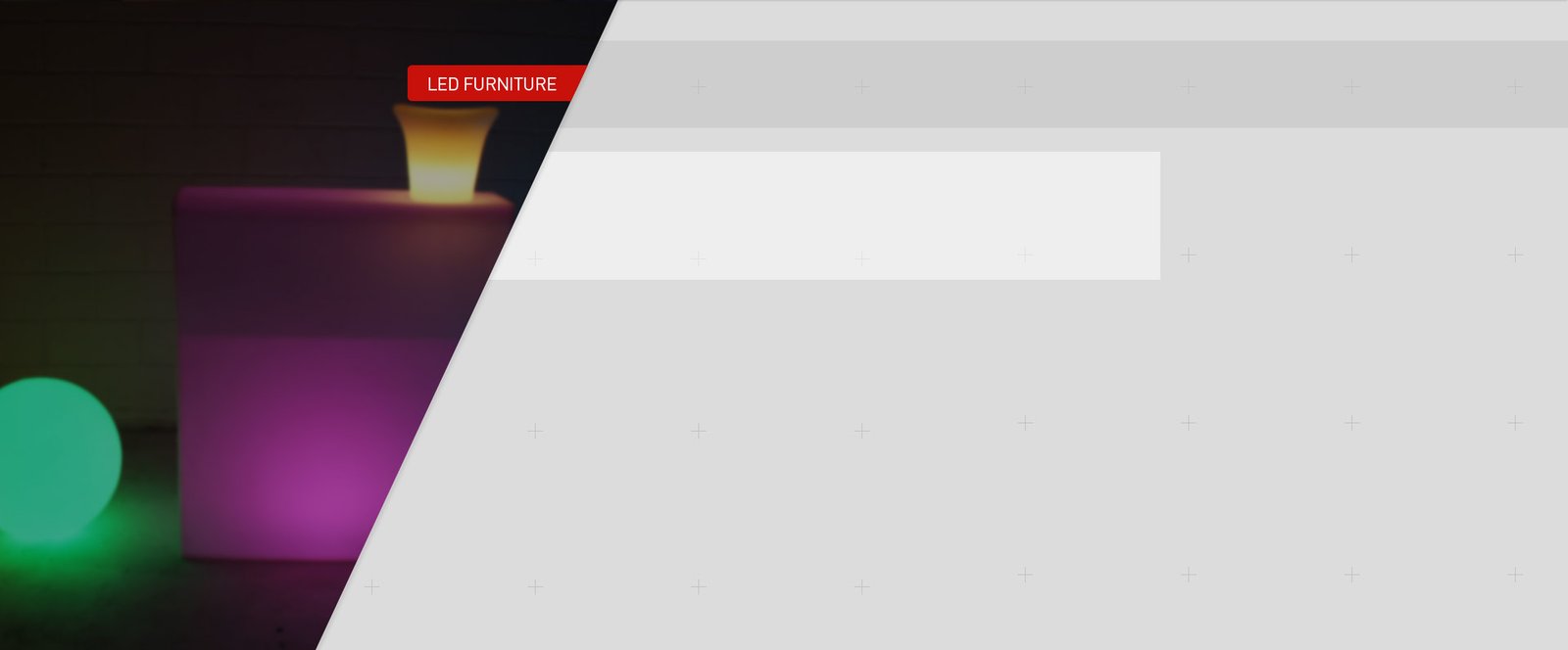 Os móveis e objetos de decoração das linhas Lude e Cube são iluminados por LEDS RGB que possibilitam a escolha de 16 cores acionados por controle remoto. O controle conta com 4 opções pre programadas de troca de iluminação, além das 16 cores padrão.